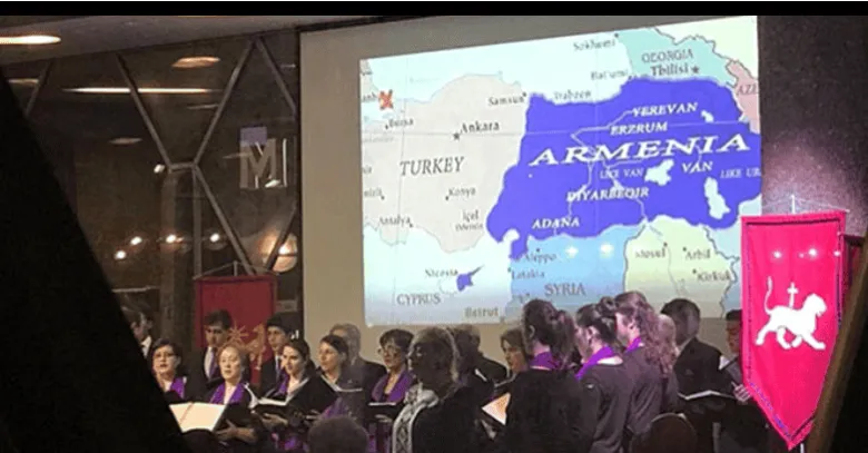 Միջոցառման ընթացքում ցուցադրվել է մի քարտեզ, որտեղ Հայաստանի սահմանները հյուսիսում հասնում են մինչև ներկայիս Թուրքիայի Սամսուն, հարավում՝ մինչև Մերսին քաղաքները՝ ընդգրկելով նաև մերօրյա ինքնահռչակ Հյուսիսային Կիպրոսի Թուրքական Հանրապետության տարածքը։ Միևնույն ժամանակ թուրքական լրատվամիջոցների աչքից չի վրիպել նաև այն, որ ներկայացված քարտեզում Ստամբուլի վրա կարմիր խաչ է դրված եղել։