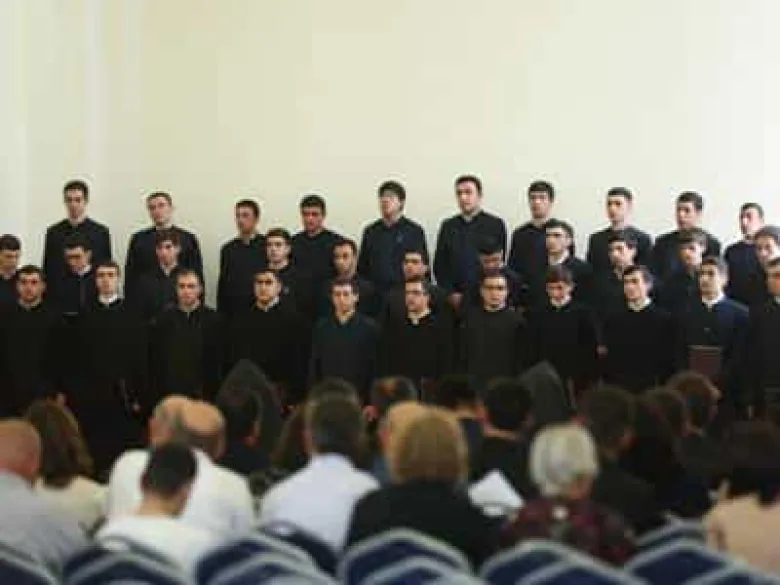 Ապա հոգևոր, ազգային երգերի կատարումներով և ասմունքով հանդես եկան Գևորգյան հոգևոր ճեմարանի երգչախումբն ու սաները։