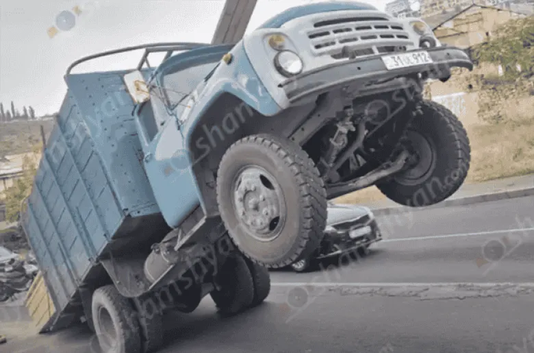 Տախտակներով բարձված բեռնատարը մասամբ հայտնվել է օդում. Shamshyan.com