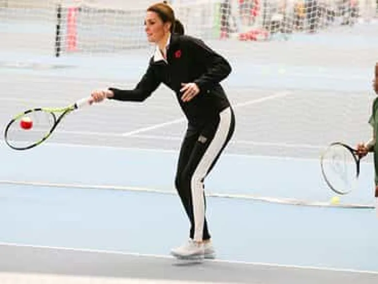 Դքսուհին տաբատը հագել էր Լոնդոնի Ազգային թենիսի կենտրոնում երեխաների հետ թենիս խաղալու ժամանակ: