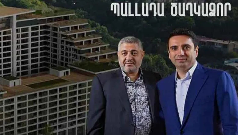 Հիշեցնենք, որ խոսքը մեծամասշտաբ շինարարության մասին է, որի գովազդը ամենուր պտտվում է, բայց, փաստորեն, շենքի կառուցումը լուրջ ռիսկերի առջեւ է: Ըստ «Հետք»-ի՝ ընկերության հիմնադիր բաժնետերերը չորսն են՝ Ռոբերտ Գալուստյանը, Կարեն Դավթյանը, Լեւան Չիկովանին եւ Էդգար Ավագյանը (բոլորը` 25-ական % բաժնեմասով)։ Մեկ տարի անց Կարեն Դավթյանն իր բաժնեմասը փոխանցել է իրեն փոխկապակցված անձին՝ Գեղամ Կիրակոսյանին։ Հատկանշական է, որ «Պալլադա Ծաղկաձոր» բազմաֆունկցիոնալ բնակելի համալիրի կառուցապատման մեջ 25 տոկոս բաժնեմաս ունի ԱԺ նախագահ Ալեն Սիմոնյանի որդու կնքահայրը՝ Էդգար Ավագյանը` այն նույն անձը, որին 2016 թ.-ին սնանկ ճանաչելու պահանջով դատարան է դիմել «Արարատբանկը», քանի որ բանկում 2012 թ.-ից Ավագյանը 28 հազար դոլարի վարկ է ունեցել, որը 2015-ից հետո պատշաճ չի մարել։ Սնանկացած քավորը երբեք շինարարական բիզնեսով չի զբաղվել, վերջին տվյալներով էլ այսօր աշխատում է Ալեն Սիմոնյանի կնոջ ղեկավարած «Ֆրինյուզ» ՀԸ-ում։ Այս արտոնյալ շինարարների խումբը, Ծաղկաձորում չունենալով շինթույլտվություն, արդեն իսկ սկսել է շինաշխատանքներ. հետո Ծաղկաձորի քաղաքապետ Նարեկ Հարությունյանը տվել է նրանց շինթույլտվություն, որից հետո նոր՝ 2023 թվականի հունիսի 26-ին, Ծաղկաձոր համայնքում հանրային լսումներ են հրավիրվել շինթույլտվություն ստանալու համար: Այսինքն՝ օրենքի կոպիտ խախտում է աձանագրվել. պետք է գործընթացը հակառակ կողմից սկսվեր: