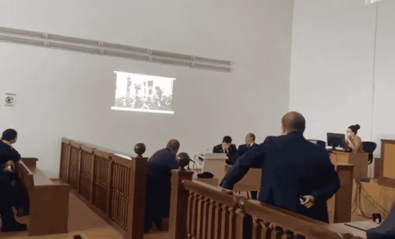 Այս պահին առաջին ատյանի դատարանի Աջափնյակի նստավայրում դատախազության կողմից հանրային մեղադրողը պարբերաբար միացնում է «Նիկոլ, դավաճան» վանկարկումներով տեսագրություններ: