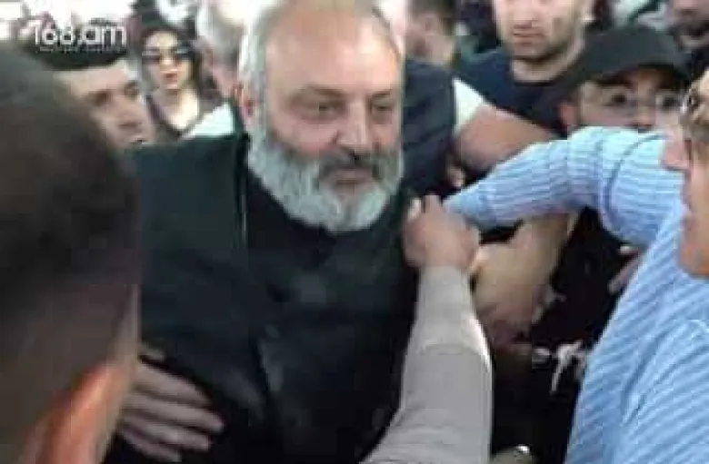 Ոստիկանները քաշքշում են Բագրատ սրբազանին և բերման ենթարկում նրա հետ ակցիա անող քաղաքացիներին