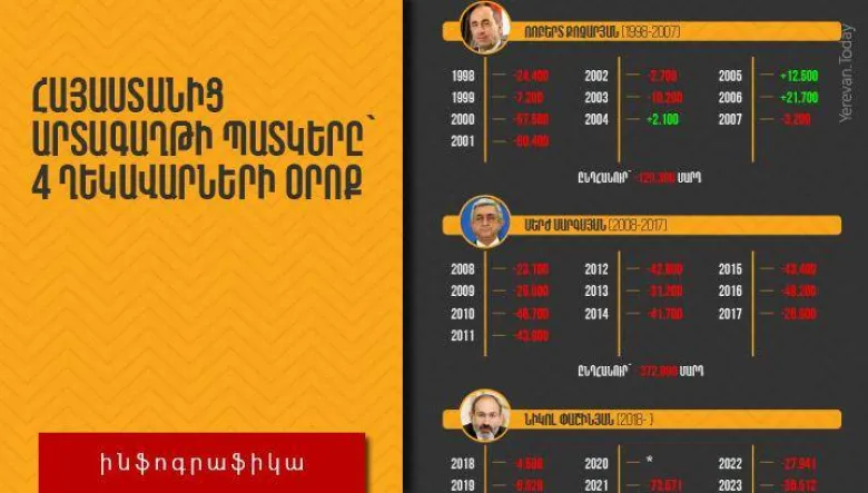 Հայաստանից արտագաղթի պատկերը՝ 4 ղեկավարների օրոք․ Ինֆոգրաֆիկա