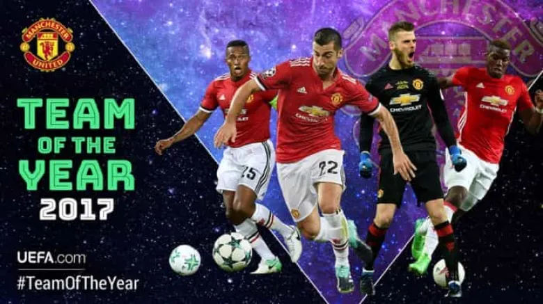 ՈւԵՖԱ-ն ներկայացրել է 50 ֆուտբոլիստների, որոնք հավակնում են ընդգրկվել տարվա խորհրդանշական հավաքականում: Ցուցակում անգլիական «Մանչեսթեր Յունայթեդն» ունի 4 ներկայացուցիչ՝ Հայաստանի հավաքականի ավագ Հենրիխ Մխիթարյանը, ֆրանսիացի կիսապաշտպան Պոլ Պոգբան, իսպանացի դարպասապահ Դավիդ Դե Խեան ու վենեսուելացի պաշտպան Անտոնիո Վալենսիան, հայտնում է ակումբի կայքը: