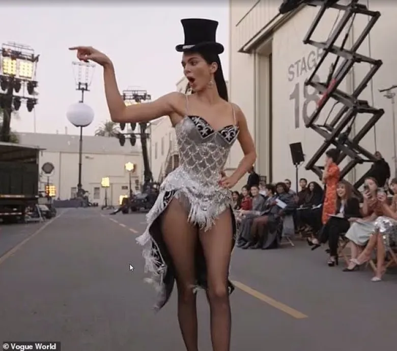 Քենդալը ժպտում և ժեստեր էր անում հանդիսատեսին, մինչ այլ մոդելներ և հայտնիներ ցուցադրում էին տարիների ընթացքում սիրված ֆիլմերի զգեստներ։