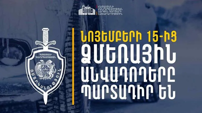 նոյեմբերի 15-ից մարտի 31-ը ներառյալ առանց համապատասխան ձմեռային անվադողերի տրանսպորտային միջոցների շահագործումը կարգելվի։