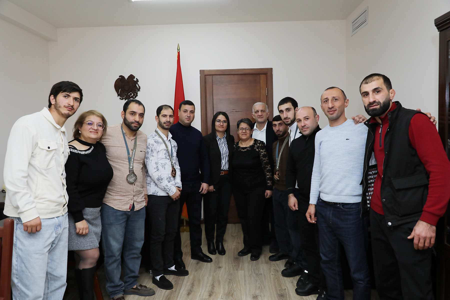 ԿԳՄՍ նախարարի տեղակալ Հասմիկ Ավագյանը շնորհավորել է մարզիկներին գրանցած արդյունքների կապակցությամբ և նշել. «Շատ ուրախ եմ, որ հնարավորություն ունենք ձեզ հետ ոչ միայն քննարկելու ոլորտային ընթացիկ հարցեր, այլև շնորհակալություն հայտնելու նվաճումների համար: Ուզում եմ ընդգծել, որ ձեր աշխատանքը տեսանելի է պետության համար, և դուք առանձնահատուկ դեր ունենք Հայաստանի Հանրապետության սպորտային նվաճումների պատմության մեջ: Ձեր շնորհիվ հեռավոր Ճապոնիայում բարձրացվեց Հայաստանի դրոշը, և մրցող բազմաթիվ երկրներ ճանաչեցին մեր երկիրը»: