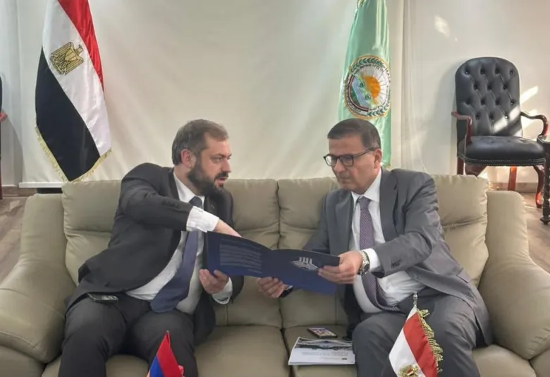 ՀՀ էկոնոմիկայի նախարար Գևորգ Պապոյանը Եգիպտոսի Արաբական Հանրապետություն կատարած այցի շրջանակում հանդիպում է ունեցել ԵԱՀ արտաքին առևտրի և ներդրումների նախարար Հասան ալ Խատիբի հետ։