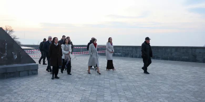 ՀՀ կրթության, գիտության, մշակույթի և սպորտի նախարար Ժաննա Անդրեասյանն այսօր հերթական այցն է կատարել հուշահամալիր՝ աշխատանքների ընթացքին ծանոթանալու նպատակով: Նրան ուղեկցել է ԿԳՄՍՆ գլխավոր քարտուղար Հասմիկ Հակոբյանը: