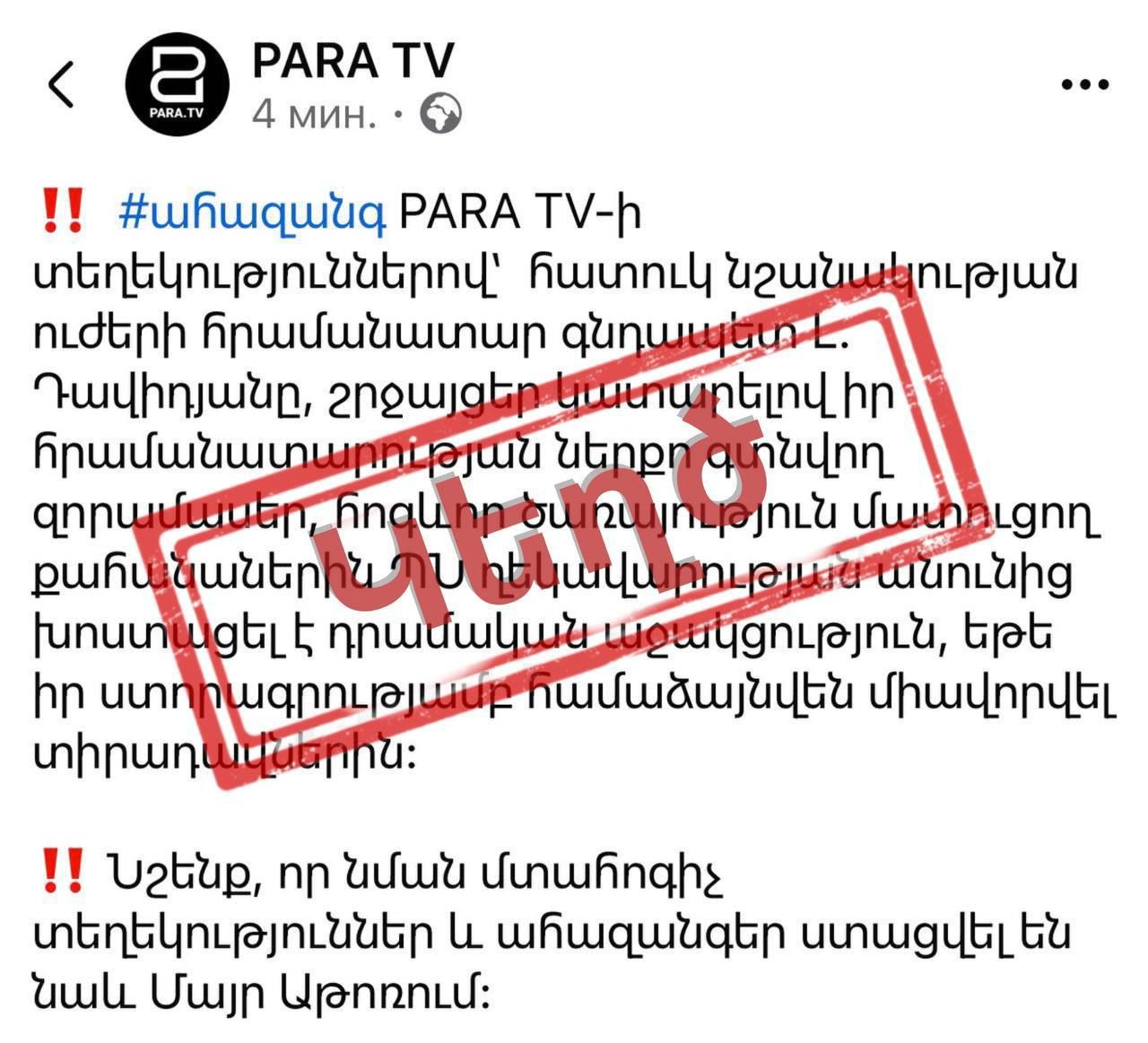 «Չի համապատասխանում իրականությանը»,- գրել է պաշտպանության նախարարի մամուլի քարտուղար Արամ Թորոսյանը և կից հրապարակել իրականությանը չհամապատասխանող պնդումը: