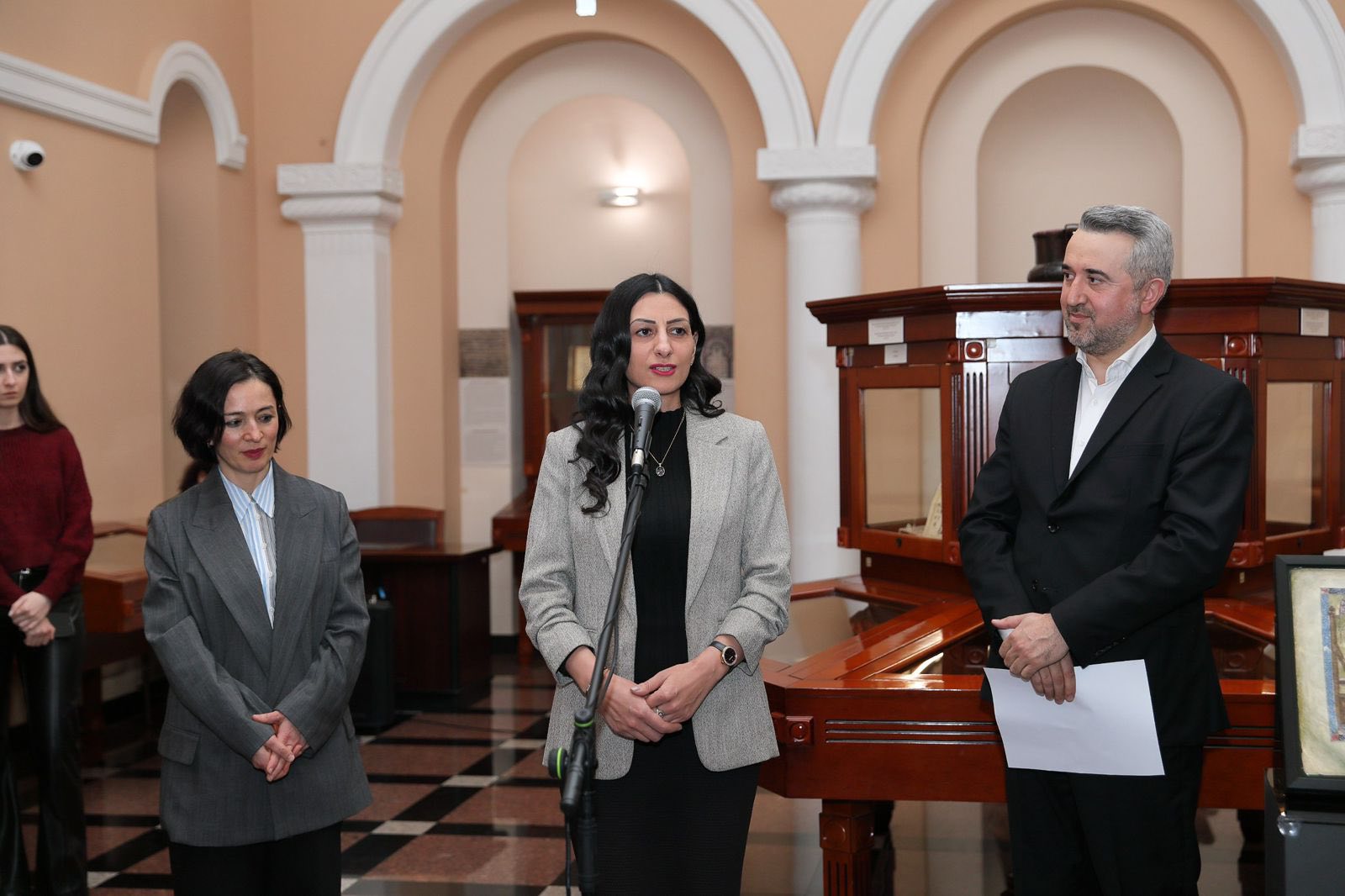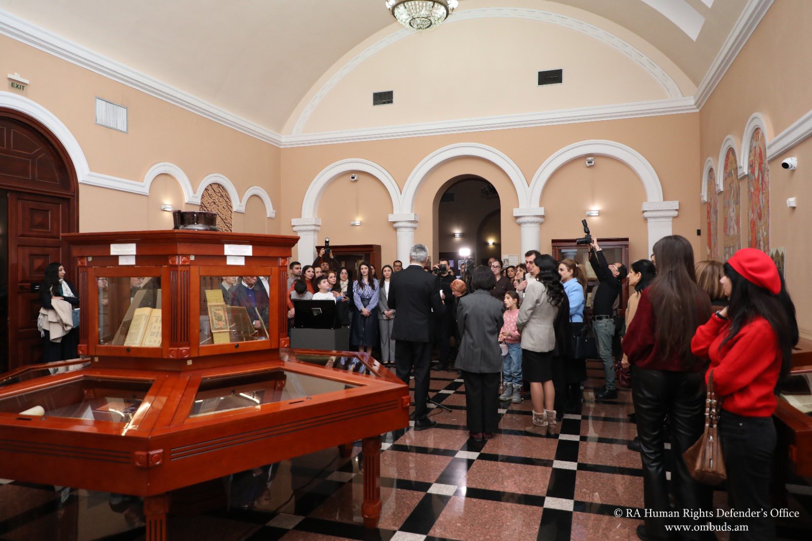 Հունվարի 29-ին Մատենադարանի Մեսրոպ Մաշտոցի անվան հին ձեռագրերի գիտահետազոտական ինստիտուտի թանգարանում մասնակցել և ողջույնի խոսքով եմ հանդես եկել «Շոշափելով մատյանները. ամենքի Մատենադարանը» ներառական ծրագրի շրջանակում կազմակերպված ցուցադրությանը: Իմ խոսքում շնորհակալություն եմ հայտնել նման կարևոր նախաձեռնություն իրականություն դարձնելու համար. «Ուրախ եմ գիտակցել, որ մենք այսօր համախմբվել ենք այսպիսի կարևոր գաղափարի շուրջ։ Հասարակությունում համերաշխության և հավասար հնարավորությունների ձևավորումն անհնար է առանց համատեղ ու համակարգված ջանքերի, իսկ մեր ներկայությունը այստեղ հենց այդ մշակույթի վկայությունն է։ Հույս ունեմ, որ սա չի լինի մեկանգամյա միջոցառում, և առաջիկայում ոլորտում կունենանք էական ու կայուն արդյունքներ»: