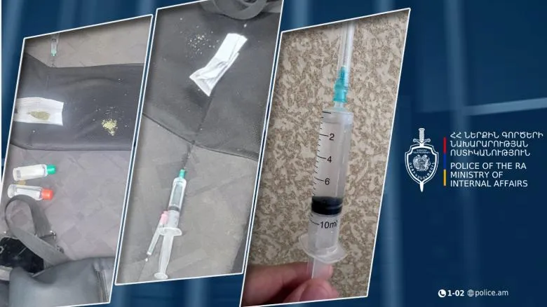 Նախաձեռնված քրեական վարույթի շրջանակում կատարված խուզարկությամբ մեքենայում հայտնաբերվել են մարիխուանա թմրամիջոցի նմանվող զանգված, մեթադոն թմրամիջոցի նմանվող հեղուկով տարաներ և նույն հեղուկով ներարկիչ, գաղտնի փականով երկու դանակ և այլ առարկաներ: