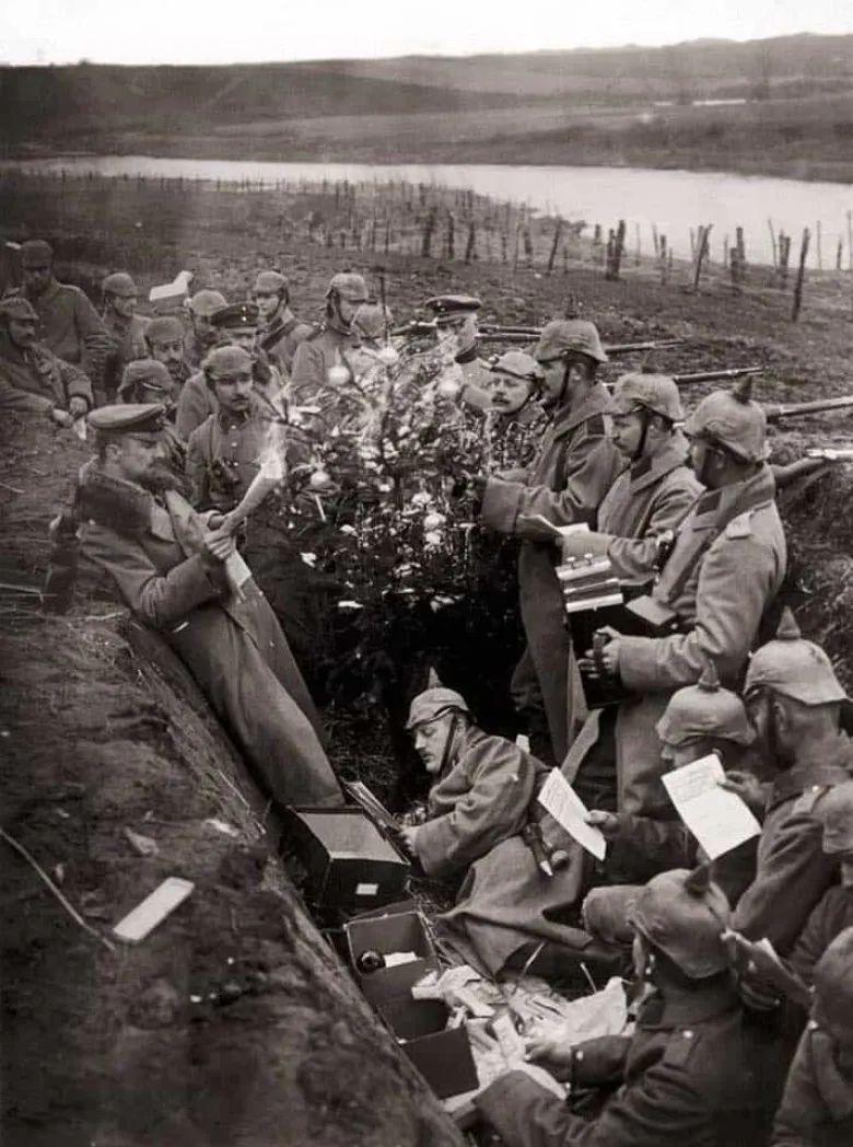 Պատերազմը նոր թափ էր հավաքել ու դիրքերում արյունալի ճակատամարտեր էին տեղի ունենում, սակայն Սուրբ ծննդի նախօրեին ինքնակազմակերպված հրադադար տեղի ունեցավ, բոլոր մարտնչող կողմերը դուրս եկան խրամատներից, փոխանակվեցին վիսկի շնափսերով, սիգարետներով, ուտելիքով, միմյանց հետ անցկացրին տոները, որից հետո նորից դիրքավորվեցին...