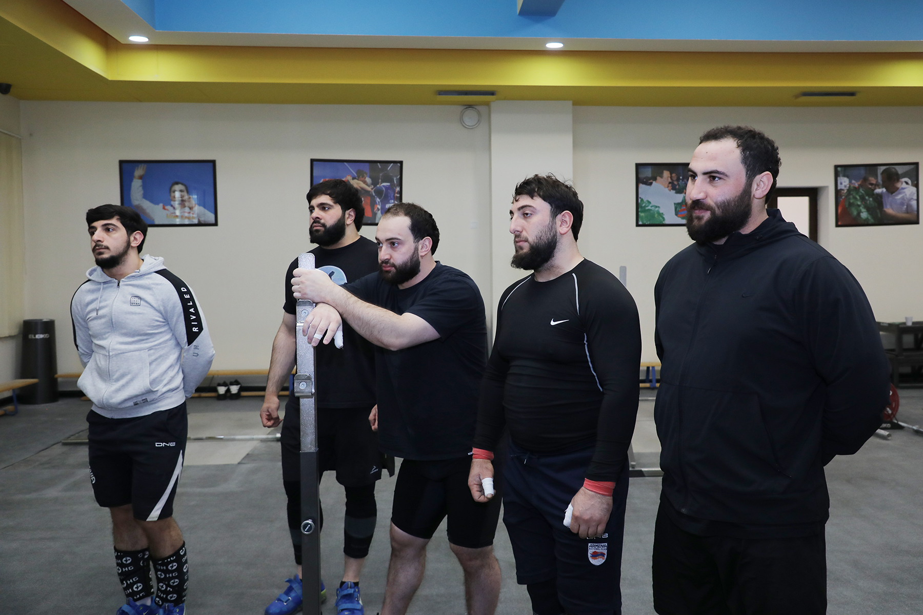 Տղամարդկանց հավաքականում ընդգրկված են Գառնիկ Չոլաքյանը (60 կգ), Գոռ Սահակյանը (71 կգ), Մարտին Պողոսյանը (79 կգ), Ռաֆիկ Հարությունյանը (88 կգ), Արա Աղանյանը (94 կգ), Սիմոն Մարտիրոսյանը, Գարիկ Կարապետյանը (երկուսն էլ՝ 110 կգ) և Վարազդատ Լալայանը (+110 կգ)։