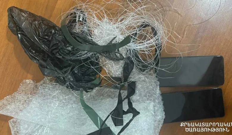 Տարածքի զննության արդյունքում հայտնաբերվել է կպչուն ժապավենով փաթեթավորված պոլիէթիլենային տոպրակ, որում առկա էր 2 բջջային հեռախոս: