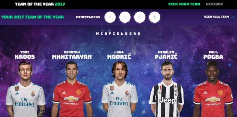 ՈւԵՖԱ-ի պաշտոնական կայքում հունվարի 10-ին կավարտվի 2017թ. եվրոպական լիգաների տարվա խորհրդանշական հավաքականի քվեարկությունը: 15 թեկնածու կիսապաշտպանների թվում է նաեւ «Մանչեսթեր Յունայթեդ»-ի եւ Հայաստանի հավաքականի խաղացող Հենրիխ Մխիթարյանը: