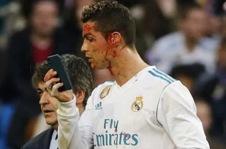 Հարվածի արդյունքում, Ռոնալդուի դեմքը սկսել է արնահոսել: Լքելով խաղադաշտը` Ռոնալդուն թիմի բժշկից հեռախոս է խնդրել, որպեսզի տեսախցիկի օգնությամբ տեսնի, թե ինչ տեսք ունի ստացած վնասվածքից հետո: Դեմքի վերքն, իհարկե, դժգոհություն է առաջացրել Ռոնալդուի մոտ: