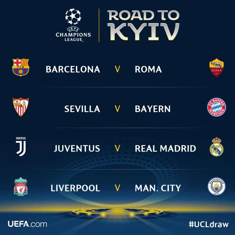 Հիշեցնենք, որ Չեմպիոնների լիգայի եզրափակիչը կայանալու է մայիսի 26-ին Կիեւի «Օլիմպիական» ստադիոնում: Կիսաեզրափակիչի զույգերը եւս որոշելու են վիճակահանությամբ։