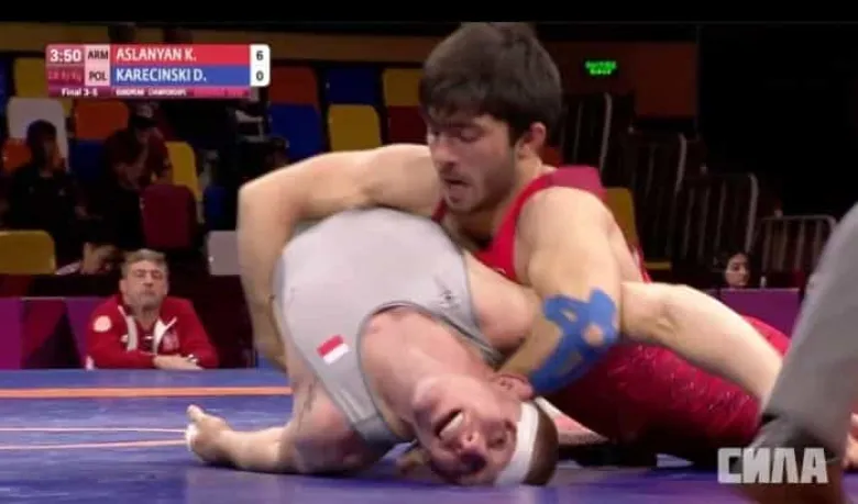 Ռուսաստանի Կասպիյսկ քաղաքում ավարտին մոտեցող հունահռոմեական ըմբշամարտի Եվրոպայի առաջնությունում Հայաստանի ներկայացուցիչ, 67 կգ քաշային Կարեն Ասլանյանը բրոնզե մեդալի համար գոտեմարտեց լեհ Դավիդ Կարեցինսկու հետ եւ հաղթեց մեծ առավելությամբ՝ արդեն առաջին մրցափուլում վաստակելով 6 միավոր: Հայ ըմբիշը մրցակցին պարտության մատնեց 7:2 հաշվով՝ առաջին մեդալը բերելով Հայաստանին այս առաջնությունում:
