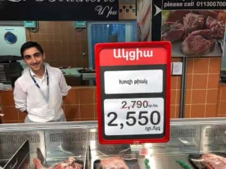 Այսօր՝ ավելի վաղ Փաշինյանը facebook-ի իր էջում լուսանկար էր հրապարակել «Քարֆուր» սուպերմարկետի մսամթերքի վաճառքի բաժնից ու գրել. «Պատահական մտա «Քարֆուր» եւ տեսա այսպիսի վիճակ. ոչ մի թանկացում»: