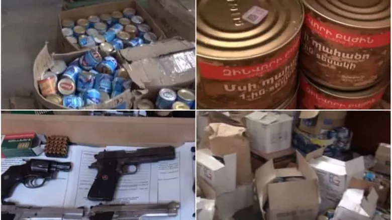 Արմավիրի մարզի Արշալույս գյուղի համապատասխան հասցեում կատարաված խուզարկությամբ՝ կենդանիներ պահելու համար առանձնացված հատվածում հայտնաբերվել են, Տավուշի մարզի Չորաթան գյուղի, Վերին Ծաղկավան գյուղի, Շիրակի մարզի Ախուրյանի, Երևանի մի քանի և Էջմիածնի դպրոցների աշակերտների և ուսուցիչների կողմից հավաքագրված գումարներով ապրիլյան քառօրյա պատերազմի մասնակիցների համար որպես օգնություն ուղարկված մեծ քանակությամբ պարկերով և արկղերով սննդամթերք, բժշկական և հիգիենայի պարագաներ, դեղորայք, զինվորական նախշերով պայուսակներ, տուփերով ներքնաշոր: