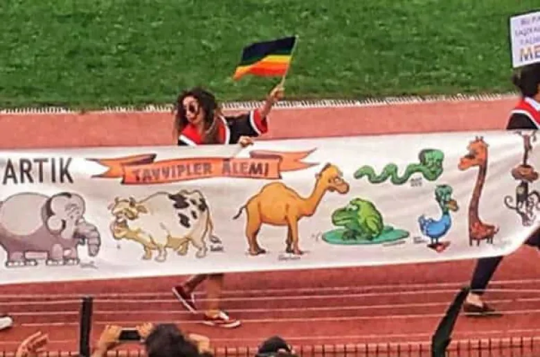 Ուսանողները, մասնավորապես, դուրս են բերել պաստառ, որի վրա պատկերված են տարբեր կենդանիներ՝ Էրդողանի դեմքով։ Պաստառի վրա գրված է եղել «Թայիփների աշխարհը»։