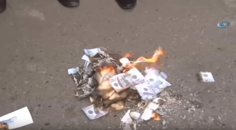 Բաքվում ամերիկյան դոլարներն այրել են որպես Թուրքիային աջակցության նշան: