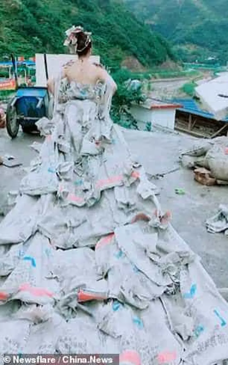 «Ցեմենտի թագուհին». չինուհին հարսանյաց զգեստ է կարել ցեմենտի 40 պարկից (լուսանկարներ, տեսանյութ)