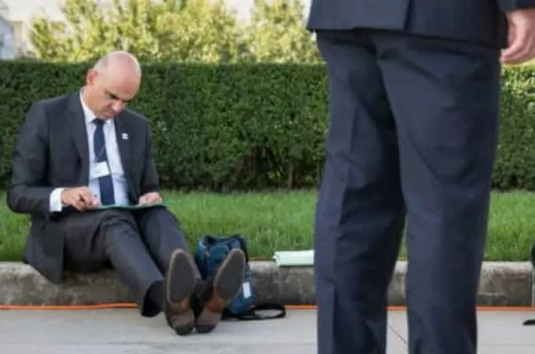 Շվեյցարիայի նախագահ Ալեն Բերսեի լուսանկարը, որում նա պատկերված է պարզապես ճանապարհի եզրաքարին նստած, մեծ տարածում է գտել սոցցանցերում: