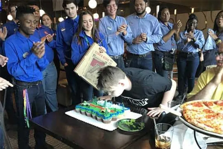 Տեսնելով իրավիճակը՝ կենտրոնի մենեջերը ասում է. «Մենք նրա համար անմոռանալի երեկույթ կկազմակերպենք, և դա ձեզ համար ոչ մի ցենտ չի արժենա»: Զվարճանքի կենտրոնի աշխատակիցները հավաքվում են Բրոդիի տոնական սեղանի շուրջ, երգում «Happy Birthday», նրա հետ զվարճալի խաղեր կազմակերպում և «Fortnite» խորհրդանիշով կեգլի նվիրում: