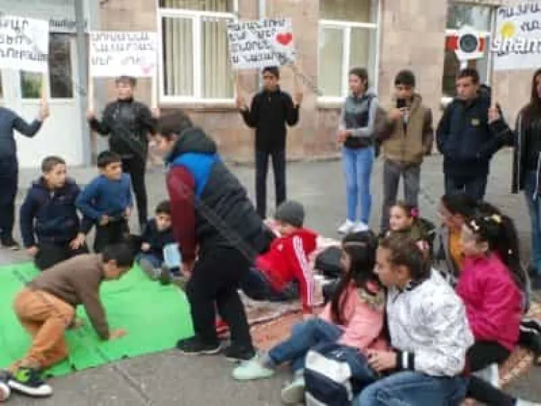 Դպրոց են ժամանել Ոստիկանության Վաղարշապատի բաժնի անչափահասների գործերով և համայնքային ոստիկանության բաժանմունքների ծառայողները։ Երեխաները դպրոցի բակում բրդե ծածկոցներ են փռել և բաց դասեր են անցկացնում։