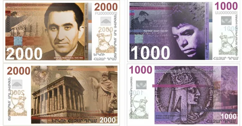 Կենտրոնական բանկից հայտնում են, որ 1000 դրամանոց թղթադրամը նվիրված կլինի Պարույր Սեւակին, 2000 դրամանոցը՝ շախմատիստ Տիգրան Պետրոսյանին, 5000 դրամանոցը՝ Վիլյամ Սարոյանին, 10.000 դրամանոցը՝ Կոմիտասին, 20000 դրամանոցը՝ Հովհաննես Այվազովսկուն, 50.000 դրամանոցը՝ Գրիգոր Լուսավորչին: