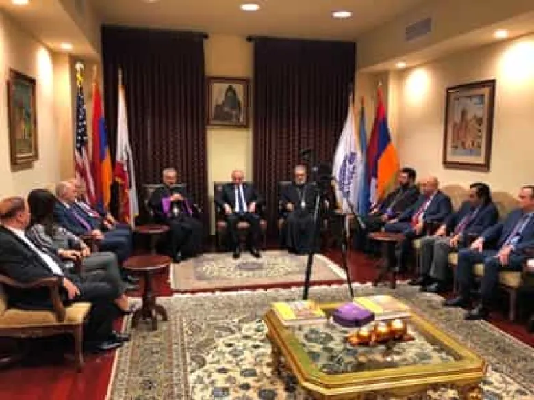 Հանդիպմանը մասնակցում էին Հայ Առաքելական Եկեղեցու Արցախի թեմի առաջնորդ Պարգեւ արքեպիսկոպոս Մարտիրոսյանը, Լոս Անջելեսում ՀՀ գլխավոր հյուպատոս Արմեն Բայբուրդյանը, պաշտոնատար այլ անձինք: