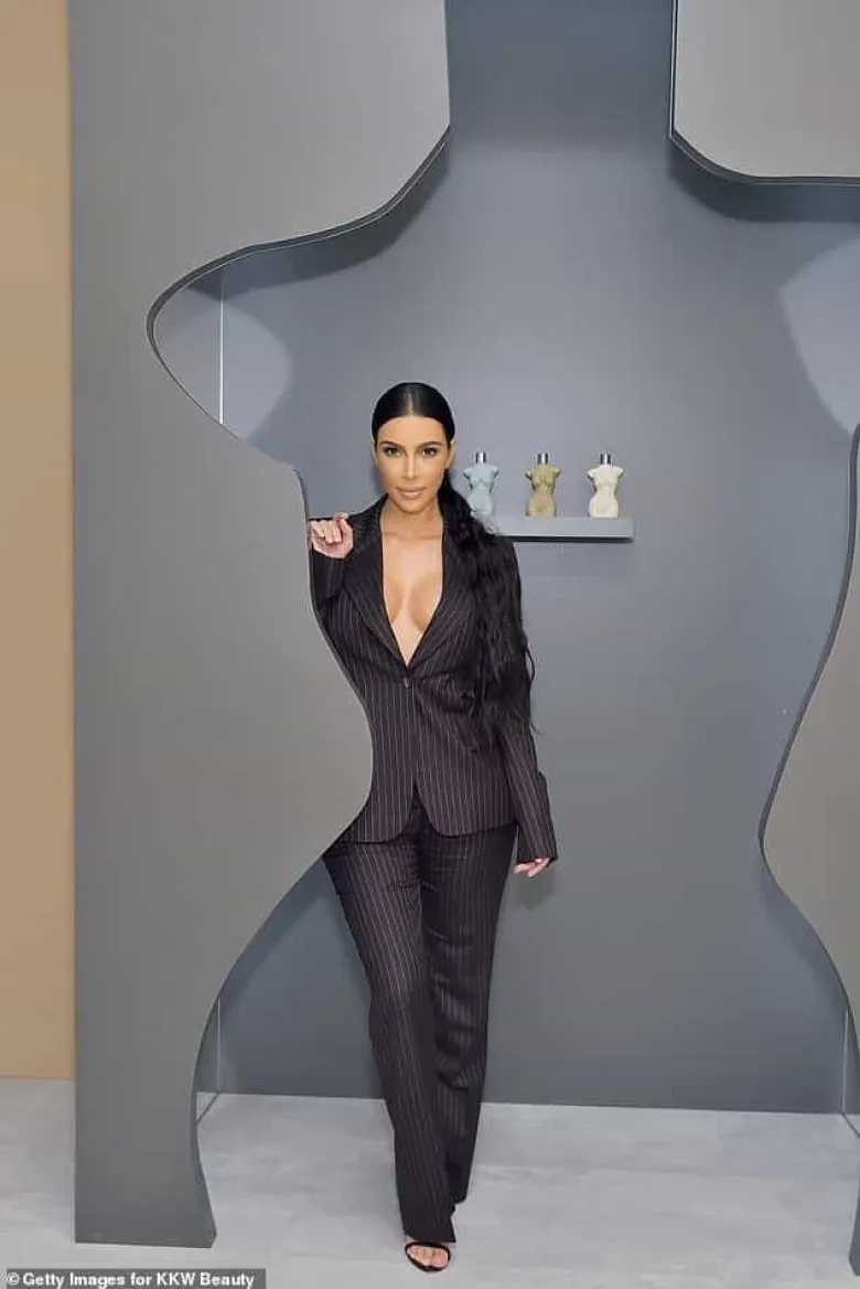 Քիմ Քարդաշյանը հյուրերին ընդունել է պիջակով, որը կրել է մերկ մարմնին