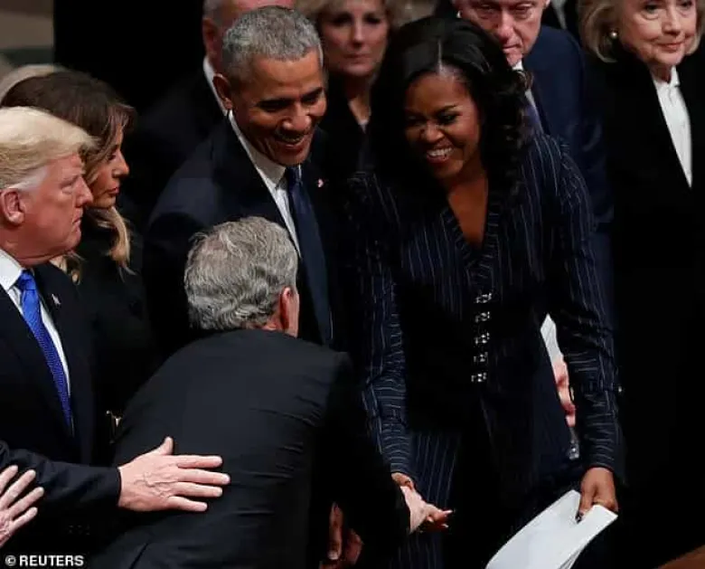 Բուշ կրտսերը հոր հոգեհանգստի ժամանակ Միշել Օբամային «գաղտնի» կոնֆետ է փոխանցել (լուսանկարներ, տեսանյութ)