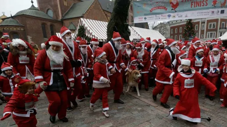 Սանտա Կլաուսի հագուստով հազարավոր վազորդներ երեկ վազքով անցել են Ռիգայի հին հատվածի փողոցներով: Նրանք անցել են 1.2կմ տարածություն:
