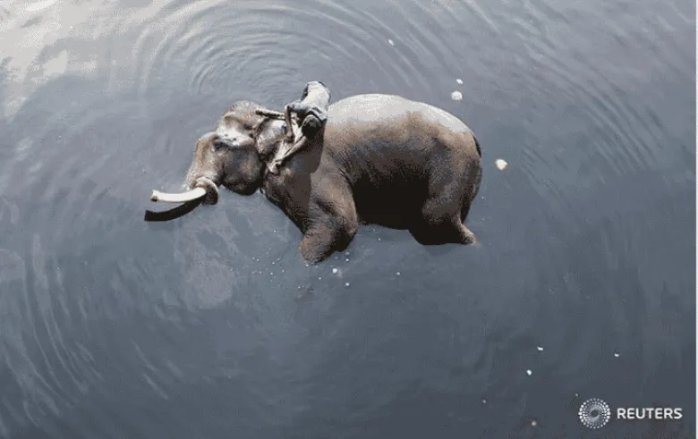 Կեղտաջրում լողացող փիղը, Հնդկաստան
