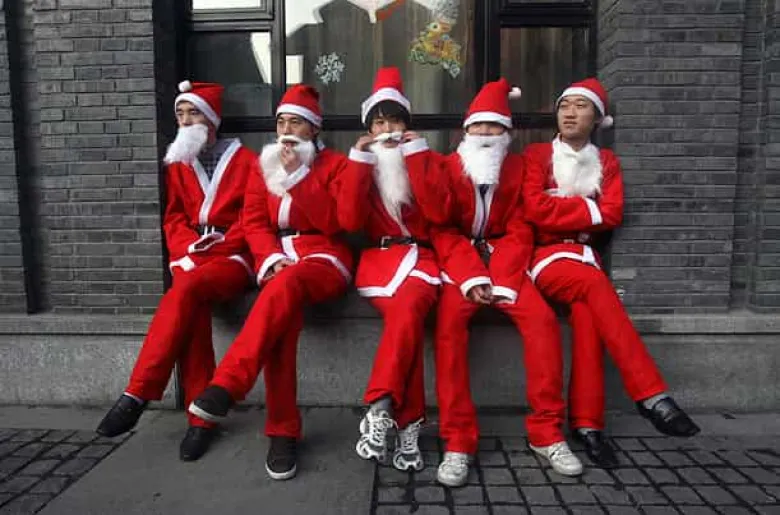 Չինաստանում կաթոլիկ Սուրբ Ծնունդը պաշտոնապես չի նշվում, սակայն շատ քաղաքներում ամանորյա խորհրդանիշներն ընդունված են և լայնորեն կիրառվում են: Բայց կան նաև բացառություններ: Օրինակ, Լանֆան քաղաքում ընդհանրապես արգելված է Ամանորի հետ կապված ամեն ինչ, նույնիսկ Ամանորի հանդերձանքի, խաղալիքների վաճառքն ու օգտագործումը, տոնական միջոցառումների անցկացումը: