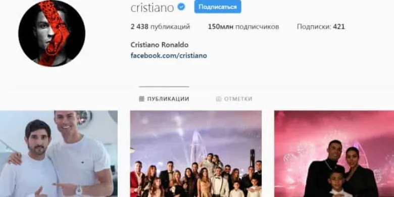 Թուրինի «Յուվենտուսի» պորտուգալացի հարձակվող Կրիշտիանու Ռոնալդուի հետեւորդների թիվը Ինստագրամում հասել է 150 միլիոնի, ինչը ռեկորդ է: Երկրորդ տեղում է երգչուհի Սելենա Գոմեսը՝ 144,5 միլիոն, երրորդ տեղում է երգչուհի Արիանա Գրանդեն՝ 141,3 միլիոն:
