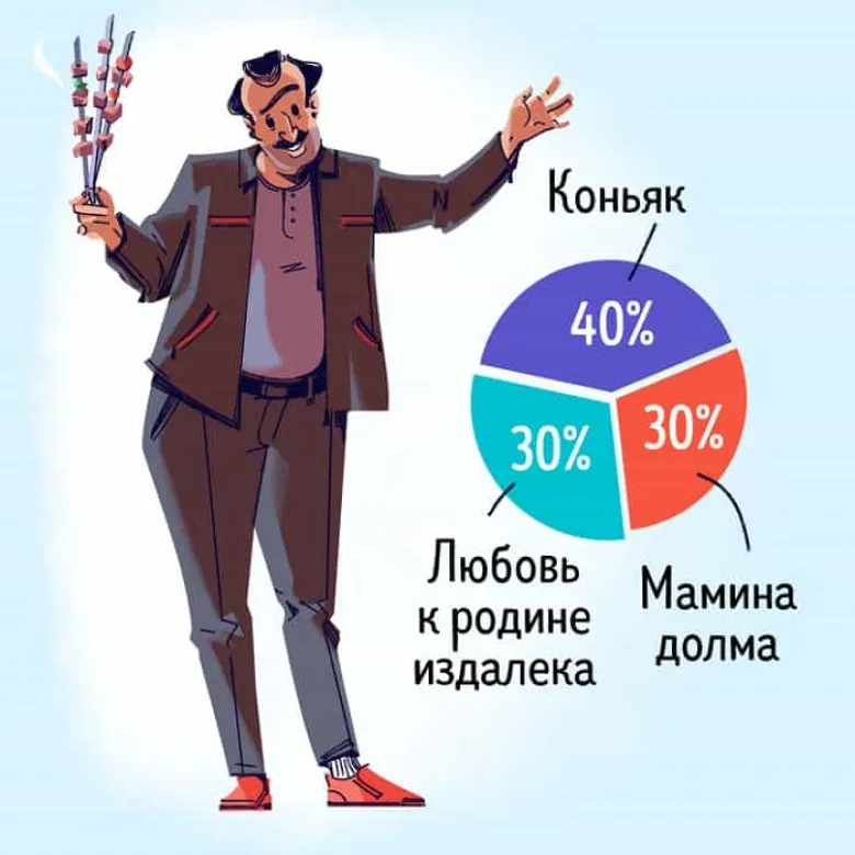 Ռուսական հայտնի AdMe.ru պորտալը նկարազարդումներ է հրապարակել ու ցույց տվել՝ «ինչից են կազմված» տարբեր ազգերի ներկայացուցիչները։