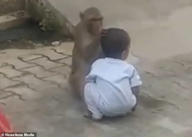 Ինչպես գրում է Daily Mail-ը, փողոցի անկյունում նստած կապիկը գրկել է տղային և հրաժարվում է նրան վերադարձնել: Փողոցով անցնող կինը, նկատելով երեխային, մոտենում է նրան՝ փորձելով փրկել տղային կապիկից, սակայն կենդանին թույլ չէր տալիս տանել երեխային: