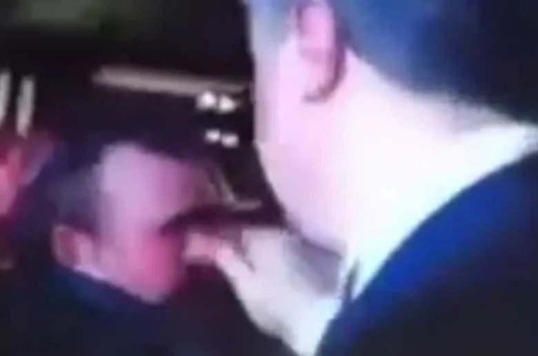 Ինչպես երևում է կադրերում՝ Պորոշենկոն ժպտալով անցնում է հավաքվածների մոտով ու նախ թփթփացնում է բազմության մեջ կանգնած տղամարդկանցից մեկի ուսին, այնուհետև բռնում նրա քթից: Դրանից հետո նախագահը շարունակում է քայլել: