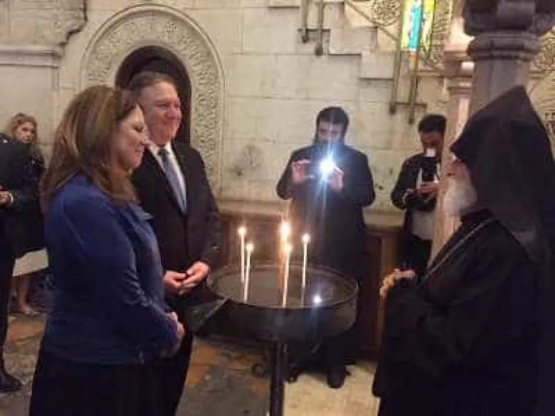 Ինչպես տեղեկացնում է Երուսաղեմի Հայոց պատրիարքարանի դիվանապետ, վարդապետ Կորյուն Բաղդասարյանը, ԱՄՆ պետքարտուղար Մայք Պոմպեոն Հարության տաճարի Հայոց եկեղեցուն պատկանող Աստվածամոր ուշաթափման սրբավայրում մոմ է վառել։
