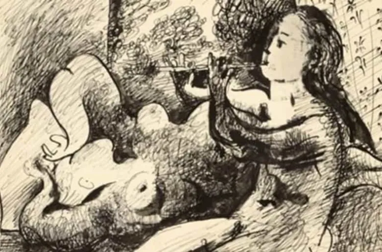 Նկարի վրա պատկերված են ֆլեյտահարուհին և մերկ կնոջ կերպար: Այն ստորագրված է Picasso PARIS և թվագրվում է 1932-ի հոկտեմբերի 22-ին: Այն վերագրվում է Պիկասոյի ստեղծագործական արվեստի սյուրռեալիստական ժամանակաշրջանին: