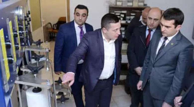 Նախարարը ծանոթացել է 2000 կիլոնյուտոն հզորությամբ մամլիչի աշխատանքին, որը բետոնի ամրության որակն է ստուգում։