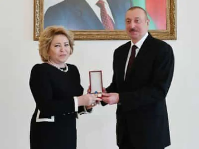 Ադրբեջանի նախագահ Իլհամ Ալիեւը Ռուսաստանի Դաշնային ժողովի Դաշնության խորհրդի նախագահ Վալենտինա Մատվիենկոյին պարգեւատրել է Ադրբեջանի «Դոստլուգ» շքանշանով, տեղեկացնում է ԱԶԵՐԹԱՋ-ը։