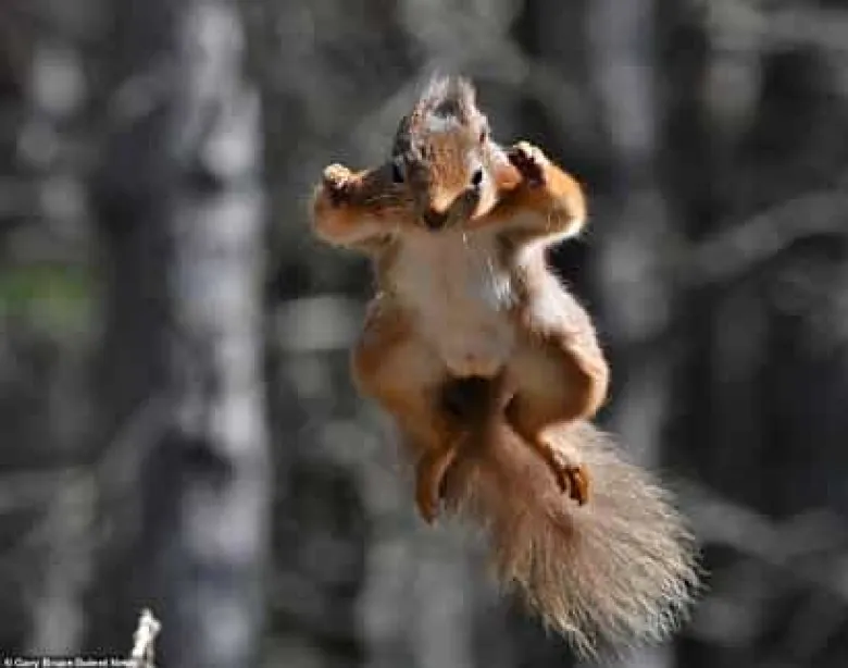 Կրծողները պարզապես թռնում էին երկնքում սննդի փնտրտուքով: Լուսանկարչի կարծիքով քաղցած սկյուռիկները նման էին Սուպերմենին: