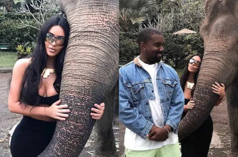 Լուսանկարներն արվել են Բալիի արգելոցներից մեկում: Դրանցում Քարդաշյանը կեցվածք է ընդունել պահպանության տակ գտնվող փղերի կողքին: