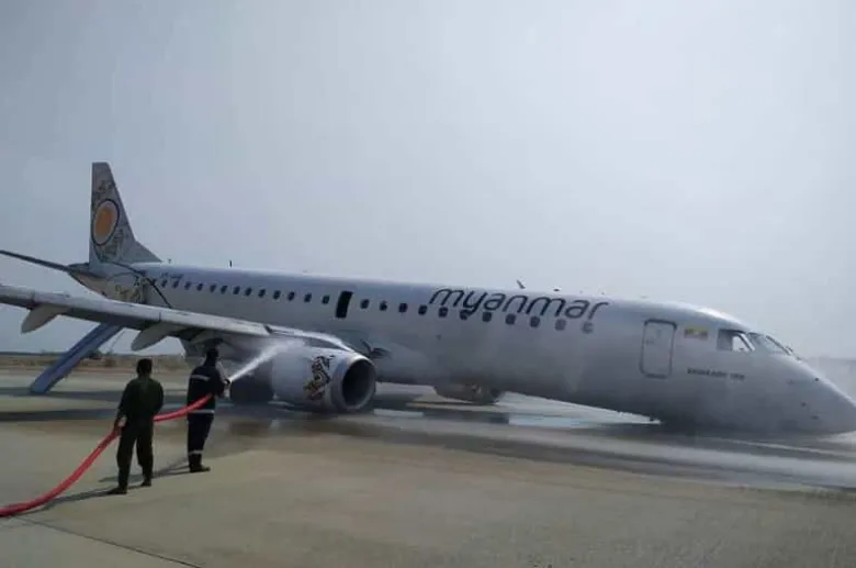 Ինչպես հաղորդում է Lenta.ru-ն, միջադեպը տեղի է ունեցել Embraer ERJ-190LR ինքնաթիռի հետ, որը Յանգոնգից ուղևորվել էր Մանդալայ: Երբ օդաչուներին չի հաջողվել բացել դիմացի շասին, նրանք երկու պտույտ են գործել ցածր բարձրությամբ թռիչքուղու վերևում, ծախսել են վառելիքն ու հաջող վայրէջք կատարել առանց շասիի: